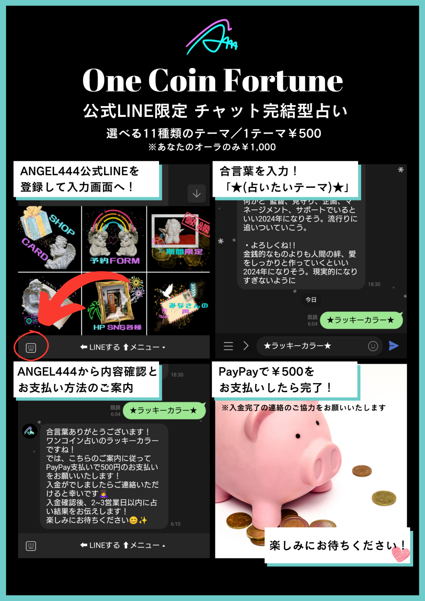 ANGEL444 公式LINEのチャットのみで提供する占いです。